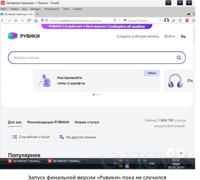В первой половине января 2024 г., как сообщал CNews, тестирование «Рувики» было завершено, и ее полноценная версия должна была заработать в течение нескольких дней. Однако на момент выхода материала на главной странице энциклопедии висела плашка с уведомлением, что она по-прежнему функционирует в бета-режиме.