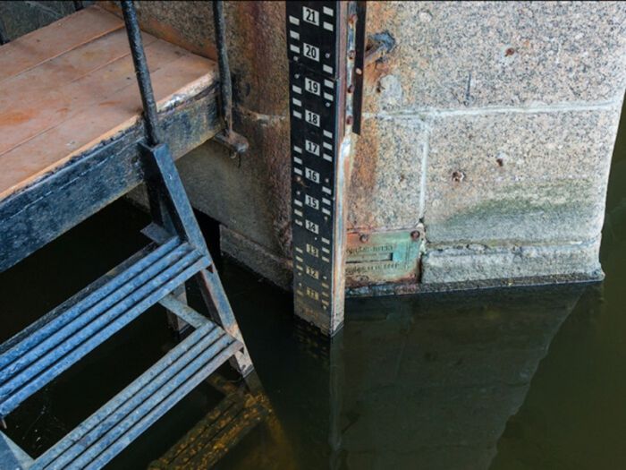 На самом деле это не просто линейка, она имеет своё название — футшток, он представляет собой измерительный инструмент в форме деревянной линейки с метками, который размещается на гидрологической станции для мониторинга и аккуратного измерения уровня воды в водоемах, таких как моря, реки и озера. В Австралии многое иначе и футштоки расположены не в реке, а на суше.