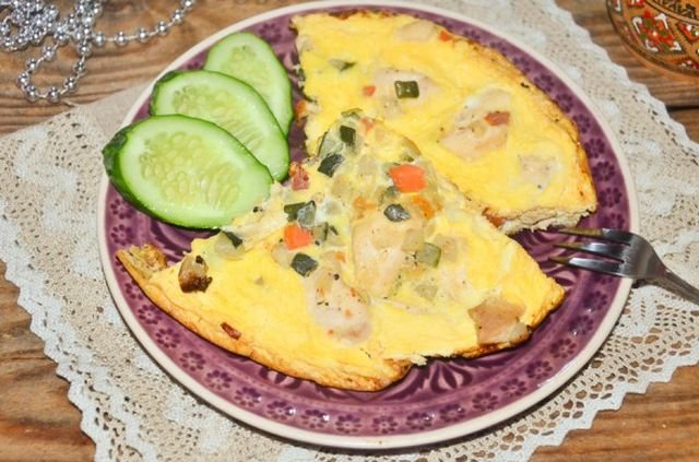 Овощной омлет с курицей