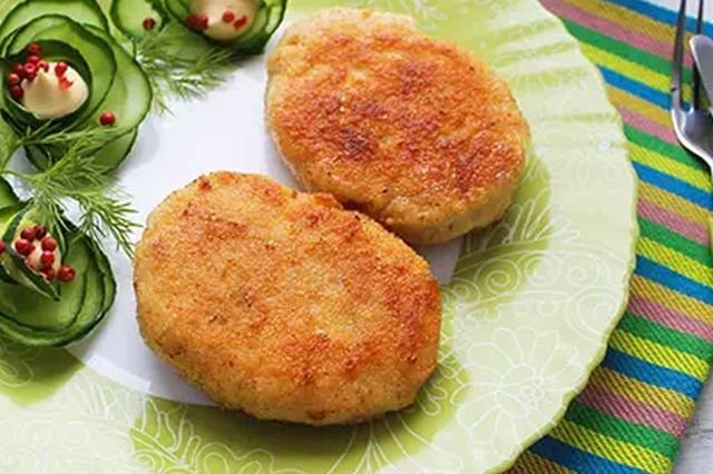 Из полученной массы формируем котлеты среднего размера. Обжариваем их на сковороде с разогретым растительным маслом по 5-6 минут с каждой стороны, пока они не станут золотистыми и хрустящими.