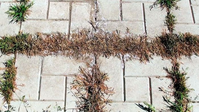 Через несколько лет после укладки тротуарной плитки между ее швами разрастаются сорняки. Это портит внешний вид дорожек, и способно повлечь выворачивание плиток корнями. При появлении в швах трудно выводимых сорняков, для их легкого удаления можно провести предварительную обработку средством на основе уксуса и соли.