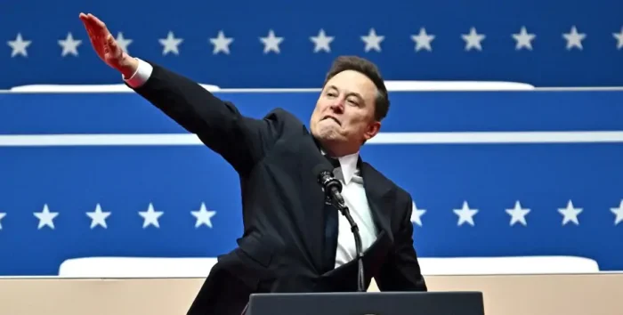 С трибуны, перед огромной аудиторией на месте и миллионами зрителей по телевизору, Илон Маск неожиданно выполнил жест, напоминающий нацистское приветствие. Сначала он постучал правой ладонью по левой части груди, а затем вытянул руку вперёд. Позже он пояснил, что это не было нацистским жестом, а он просто хотел выразить свою поддержку и благодарность избирателям, заявив, что сердцем он с каждым в зале.