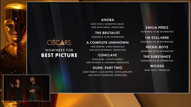 Номинанты премии "Оскар-2025" объявлены