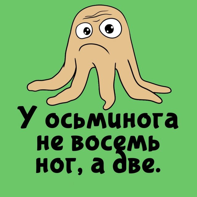 Остальные шесть щупалец по сути являются руками. Так что правильнее осьминога называть «двуногий шестирук».