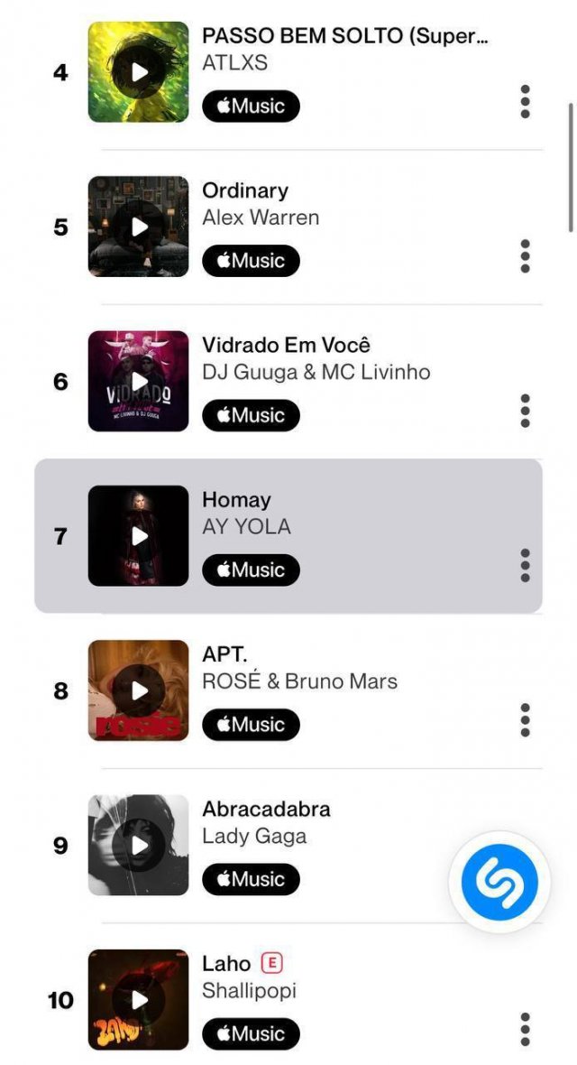 Башкирская группа Ay Yola ворвалась в топ-200 Shazam по всему миру 03/04/2025 15:00 Трек Homay от группы Ay Yola буквально покорил социальные сети! Он стремительно набирает популярность и уже обогнал Леди Гагу, заняв седьмую строчку в мировом рейтинге Shazam. Главная / Статьи +6 Admin 1 429