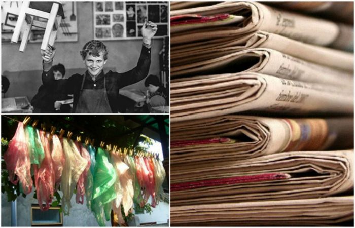 Газеты. Из них вырезали интересные статьи, а потом собирали в стопки и сдавали на макулатуру или отвозили на дачу. Кроме того, для газет находились и другие функции. В них можно было заворачивать продукты, деньги или использовать для сушки обуви. Времена изменились, популярность газет снизилась, но старшее поколение продолжает собирать газеты. Кстати, на западе такое не принято и прочитав газету, ее тут же отправляют в утиль
