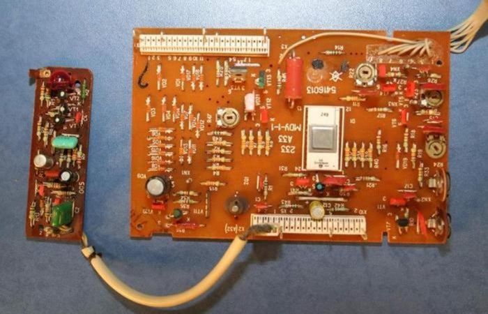Лампы, трансформаторы и конденсаторы На протяжении многих лет одним из слабых мест отечественных телевизоров оставались конденсаторы. Керамическое изделие регулярно портилось при сильном нагреве, из-за чего нарушалась работа всей схемы. Конденсаторы с электролитом зачастую страдали от быстрого пересыхания последнего, а подчас и вовсе взрывались во время работы… Также многие конденсаторы страдали от потери ёмкости со временем. Другим проблемным элементом конструкции из-за нестабильного качества оставались лампы. Чаще всего беда возникала из-за обрыва обмотки или пробоя изоляции. Кроме того, кинескопы в первых телевизорах постепенно теряли яркость картинки. Происходило это из-за снижения эмиссионной способности. Кстати, именно необходимость замены кинескопа была одним из самых суровых диагнозов мастера.