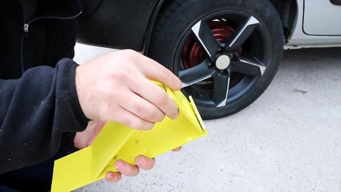 Остается лишь со всех сторон окрасить наш самодельный противооткатный упор в красный, оранжевый или желтый цвет из аэрозольного баллончика. Этого требуют Правила дорожного движения (ПДД).