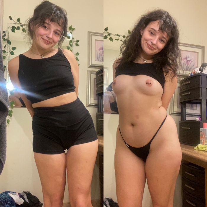 И снова хотим порадовать Вас фото с молодыми раздетыми красотками! Смотрите частные фотографии с голыми девушками и женщинами которые предстают перед нами одетыми, а на следующем кадре раздетыми. Давайте сравним одетых и раздетых прекрасных красоток!