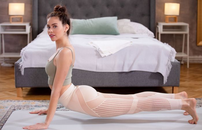Умело извиваясь перед нами в самых невероятных позах и постепенно стягивая с себя обтягивающую спортивную форму, гибкая девушка с волосатым лобком занимается йогой голышом и, высоко задирая и раздвигая красивые ножки, во всей красе демонстрирует на камеру свои сочные прелести.