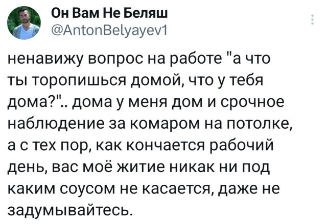 😂 Свежая подборка забавных твитов — настроение гарантировано! 15/10/2025 09:00 Пора сделать паузу и как следует посмеяться 😄 Мы собрали для вас новую порцию остроумных, абсурдных и до слёз смешных твитов обо всём на свете. Залетайте в пост, отвлекитесь от дел и зарядитесь хорошим настроением на весь день 💬🔥 Главная / Юмор 0 Admin 0 65