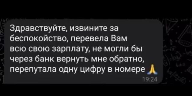 История с неожиданным поворотом: мужчине пришло 50 тысяч рублей от неизвестного отправителя. Через пару дней с ним связалась женщина и попросила вернуть деньги, объяснив перевод ошибкой.