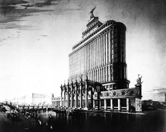 Почти всё время существования Советского Союза сопровождалось масштабным и грандиозным строительством, особенно в Москве. Однако планы сталинской реконструкции столицы 1930-1940-х годов были гораздо обширнее, чем те здания, которые действительно были возведены. Да, появились знаменитые «семь сестёр» — сталинские небоскрёбы, но множество проектов так и осталось на бумаге. Давайте рассмотрим несколько наиболее впечатляющих из них.