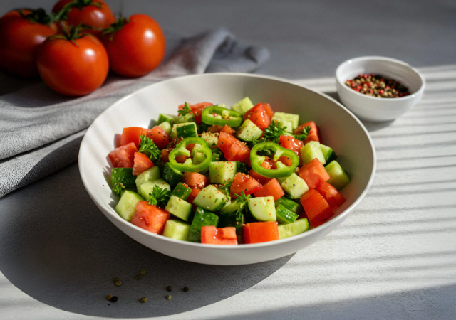 Один из таких вариантов — свежий салат с отварной говядиной и овощами. Он сочетает в себе достаточное количество белка и сезонные ингредиенты, что делает его удобным решением для повседневного рациона.