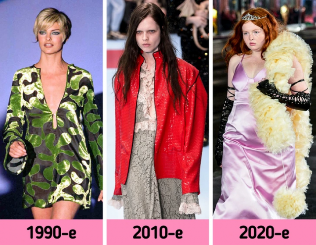 Действительно ли 30 лет - это такой огромный срок в масштабе нашей истории? Пожалуй, что нет. Но если говорить о модельном бизнесе, то, безусловно, да. Кажется, что между моделями 1990-х и 2020-х лежит настоящая пропасть. Если раньше моделями воспринимались только стройные, длинноногие красотки с мягкими чертами лица, то сегодня эти критерии уже не так важны. Сегодня на модных показах мы видим женщин с разными фигурами и неоднозначными типажами. Но стоит подчеркнуть, что лукизм - это плохо и нехорошо судить о людях по их внешности. Красота и мода - штуки очень субъективные, а тренды то меняются, то возвращаются. Так или иначе, сравнивать и сопоставлять - это всегда интересно. Давайте поглядим, как с годами менялась внешность подиумных моделей.