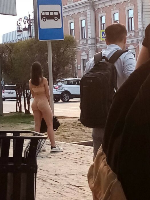 Девушка в нижнем белье на остановке общественного транспорта. Это нормально?"