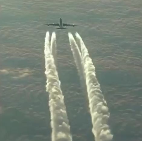 Выходящий из двигателей горячий газ конденсируется в холодном воздухе в капли воды и превращается в длинное, самое настоящее облако