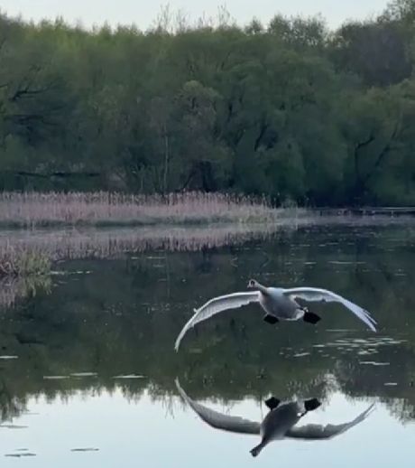 Ну чем не посадка современного авиалайнера, только вместо шасси-лапы, а вместо посадочной полосы-водная гладь.Замедленная съёмка приводнения лебедя Яся.