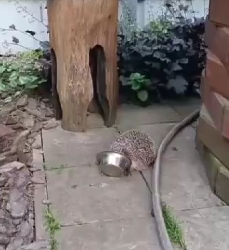Ёж-воришка отжал еду у кота в Подмосковье