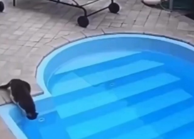 Все знают: коты и вода — несовместимы. Но один усатый герой решил удивить всех (и себя тоже). Он упал в бассейн. Сначала паника, лапки мельтешат, взгляд в духе «спасите-уносят»… А потом — та-даааам! Кот плывёт. Мораль? Не бойся нового, даже если ты — кот.