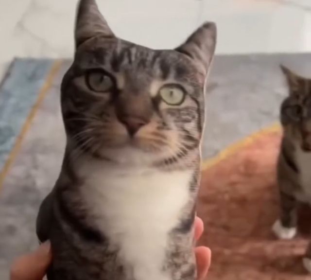 Как коты реагируют на свои плюшевые копии