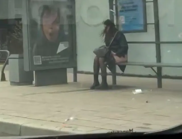 Мужчина решил снять на видео симпатичную девушку, но та неожиданно сняла трусы и стала справлять нужду на остановке.Шокированный водитель стал бить по рулю и кричать, что ему плохо.