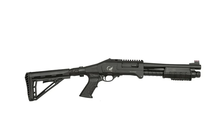 Модель Taiga WOLVERINE XM от Tamgha ArmsТурецко-канадский производитель оружия, у которого в ассортименте есть интересные складные помповые дробовики. Боекомплект 3+1 При длине ствола 25.4см общие габариты дробовика в разложенном виде 81 см, в сложенном почти 40 см. вес 2, 9кг
