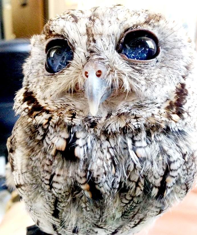 Однажды утром один из жителей Южной Калифорнии обнаружил раненную сову на крыльце своего дома. Как выяснилось позже, найдёныш относился к семейству Western Screech Owls (Западная малая ушастая сова) и был полностью слеп. Но самым удивительным в этой сове было то, что её глаза были похожи на звёздное небо...