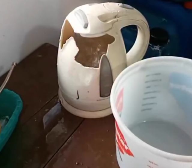 Этот чайник — чистое воплощение офисной жизни: весь потрёпанный, дымится, еле держится, но продолжает работать.