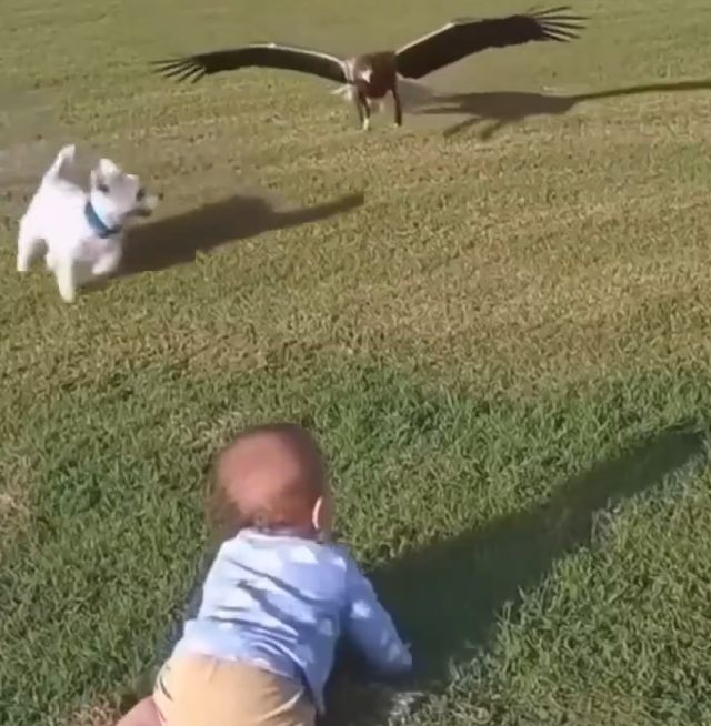 На кадрах, облетевших интернет, огромный орёл пытается утащить малыша, но героический пёс бросается в бой и вырывает ребёнка из лап хищника 🐶💥
