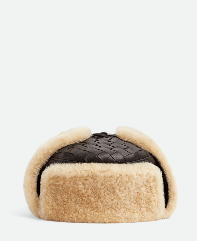 Bottega Veneta решила переосмыслить советскую классику. Итог — кожаная ушанка из фирменного плетения Intrecciato с овчиной внутри. Цена — около 113 тысяч рублей. Тепло, статусно, люкс.
