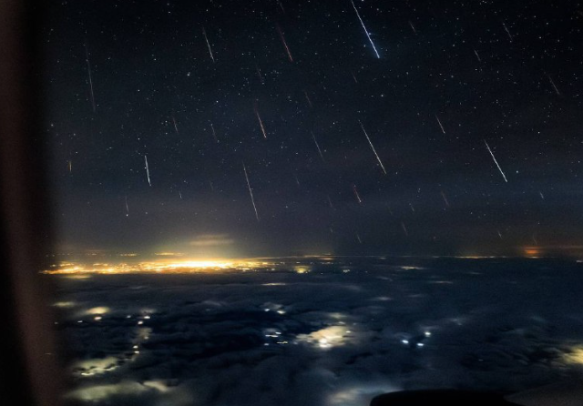 Так выглядит самый эффектный звездопад года — Геминиды — если смотреть на него не с земли, а из иллюминатора самолёта ✈️✨