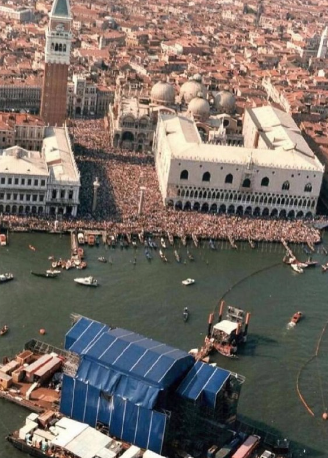 15 июля 1989 года Венеция стала сценой для одного из самых спорных концертов в истории группы. Pink Floyd выступили бесплатно — прямо на плавучей платформе в лагуне рядом с площадью Сан-Марко. Красиво, громко и с массой споров после.