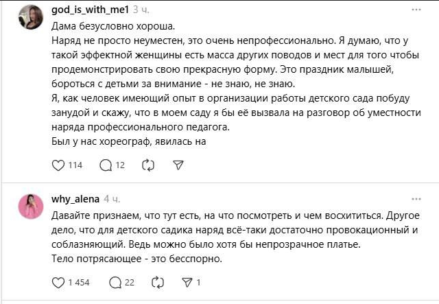 На утреннике в одном из детсадов папы обратили внимание на слишком эффектную воспитательницу. Фото ушло в сеть — и понеслось: одни в восторге, другие спорят, уместен ли такой образ рядом с детьми.