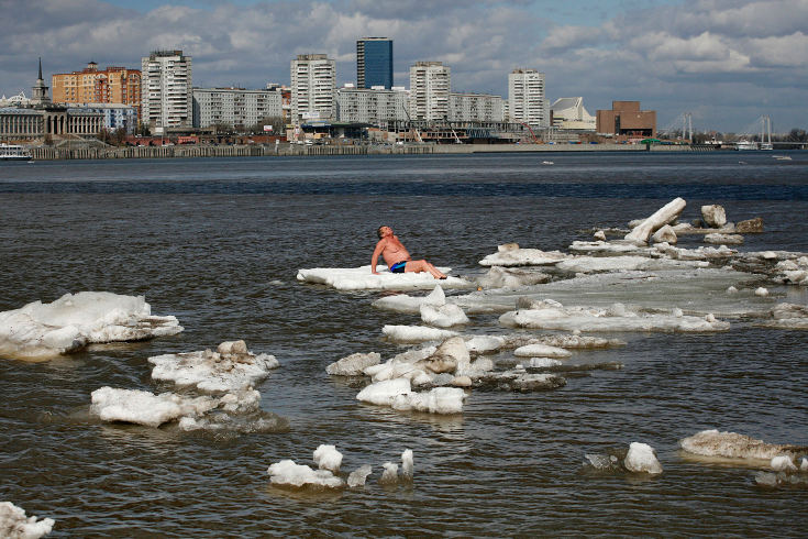Красноярск опять льдинами и моржами засветился