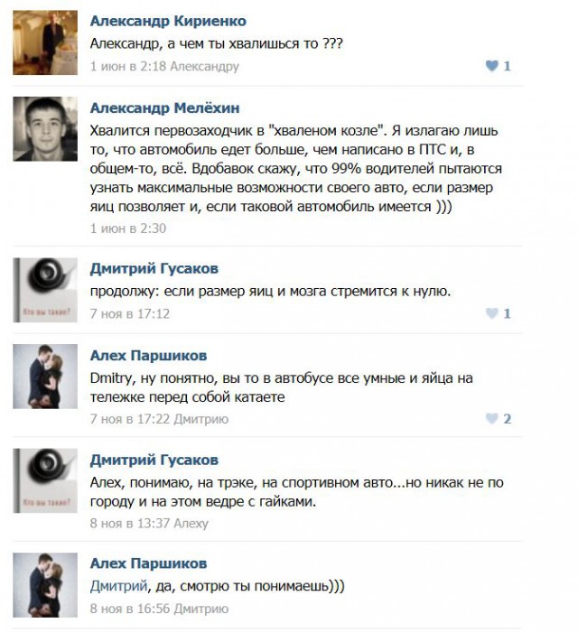 Вот "русская удаль" 12/11/2013 23:21 Прям в крови нарушать закон у наших?Небольшие скрины из фото и каментами во "вконтакте".Суть такова-чувак нарушил правила и хвастается.Поражаюсь я таким вот самородкам. Главная / Картинки -19 Admin 10 2 527