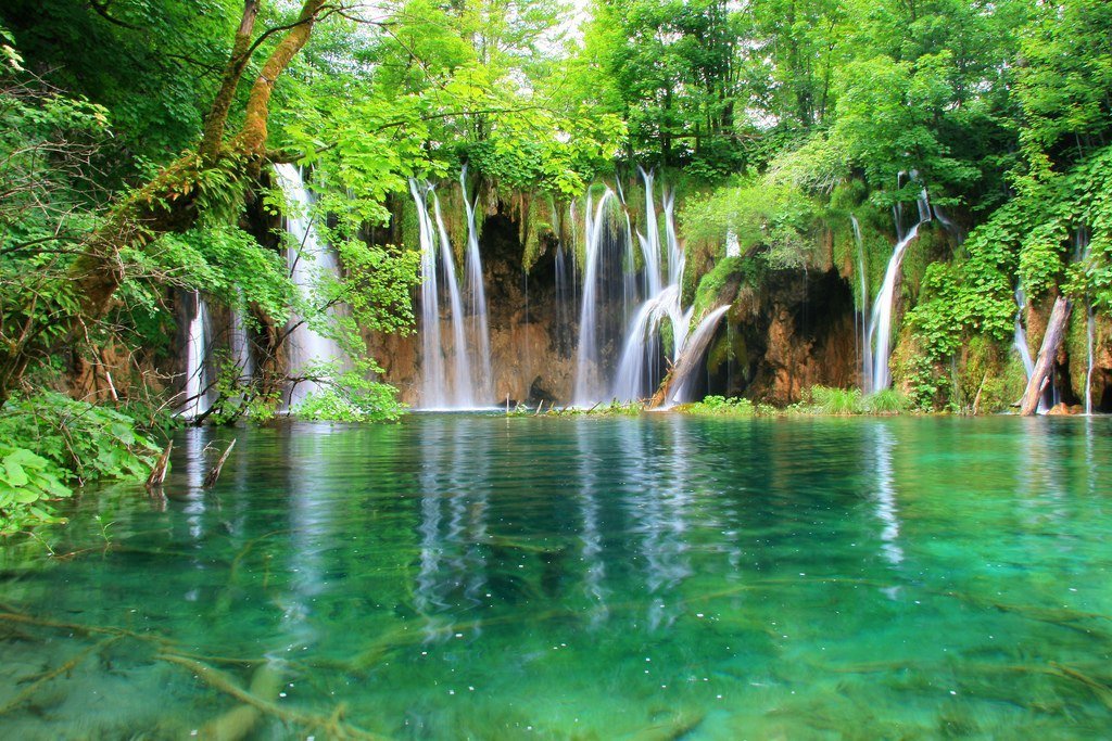 Пенистые водопады, затерянные в лесах и чащах, создают уникальные ландшафты природного парка. В высокогорной долине ежегодно появляются новые водопады: известняковые скалы, окружающие Плитвицкие озера, снабжают водоемы кальцитом, кристаллы которого превращают попадающие в воду растения, листья и ветки в твердые отложения.