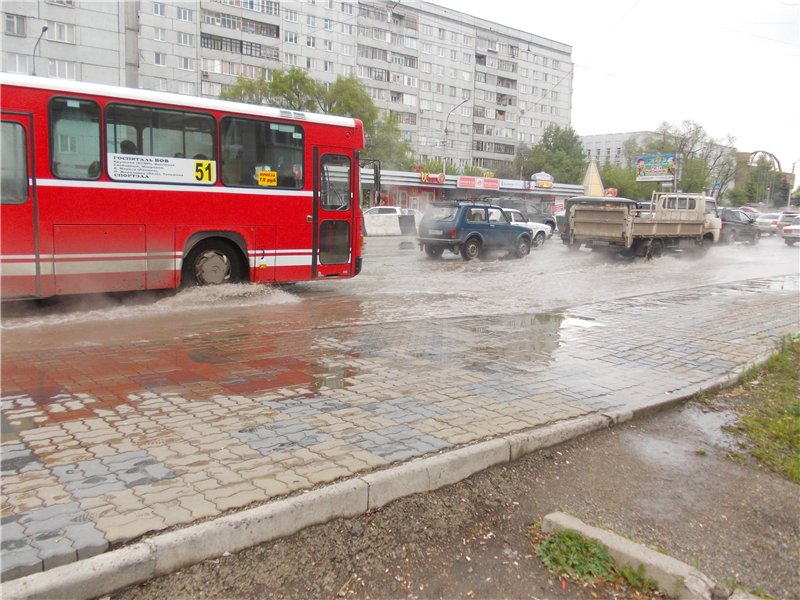 В районе остановки «Зенит» образовалась большая пробка, но на затопленной улице очень долго не было регулировщиков. Дорожная полиция выставила регулировщиков спустя почти час с начала аварии.