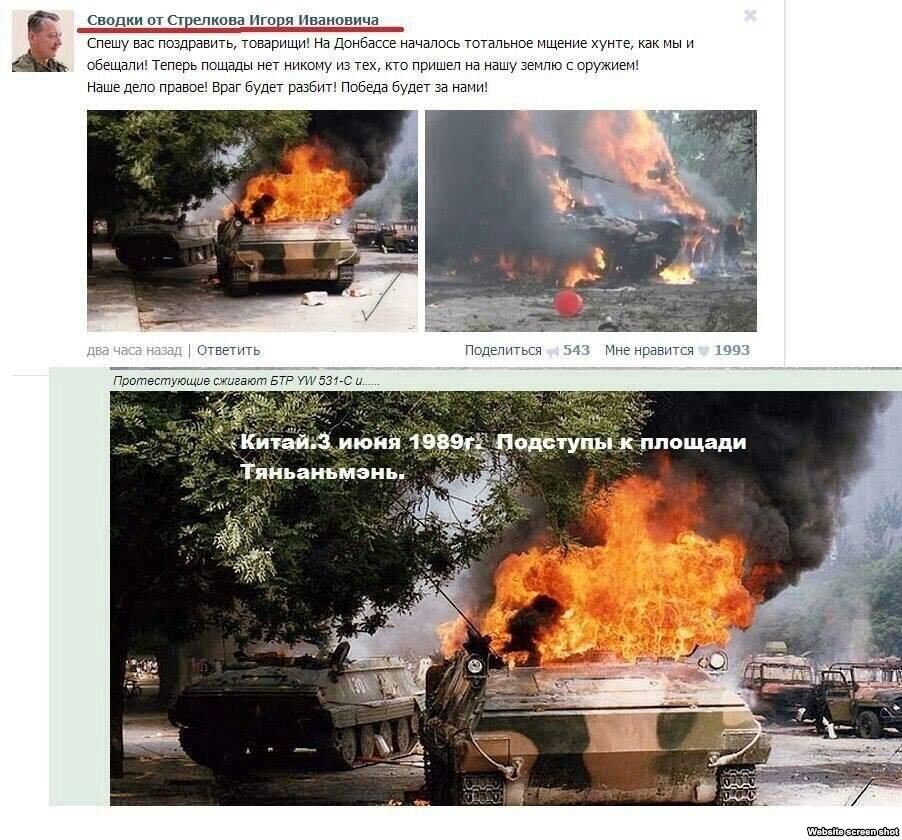 Подбитая "ополченцами" Стрелкова бронетехника на самом деле горела 25 лет назад. Столкновения на площади Тянь Ань Мынь.