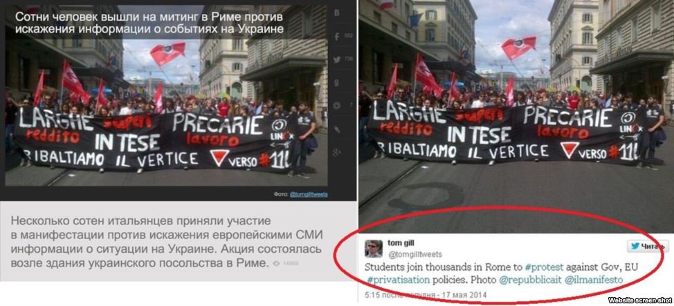 Массовые протесты молодежи в Риме против сокращения социальных пособий представлены на НТВ как протесты против ситуации в Украине.