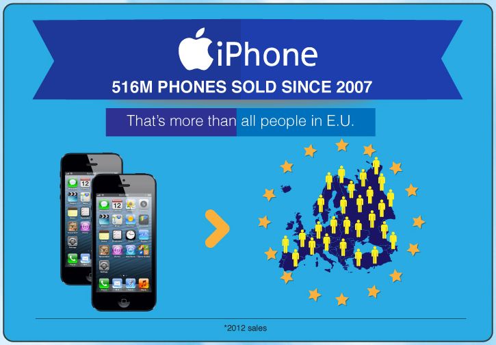 С 2007 года смартфоны Apple разошлись «тиражом» в 516 миллионов экземпляров. Это больше, чем население всего Евросоюза.
