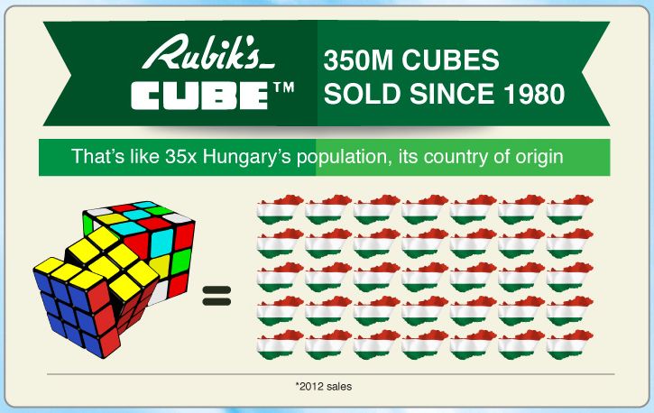 С 1980 года продано 350 миллионов. Это в 35 раз больше, чем население Венгрии, откуда родом эта знаменитая головоломка.