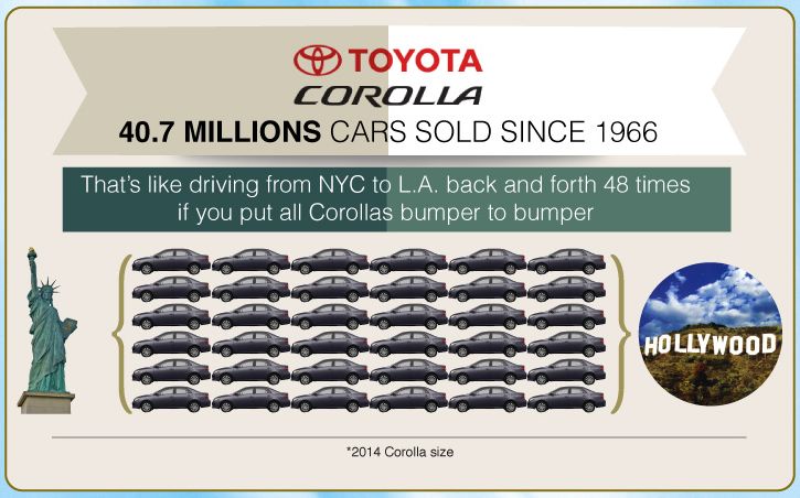 С 1966 года в мире продано 40,7 миллиона таких автомобилей. Если выстроить их в ряд бампер к бамперу, то получится 48 рядов через всю Америку - от Нью-Йорка до Лос-Анджелеса и обратно.