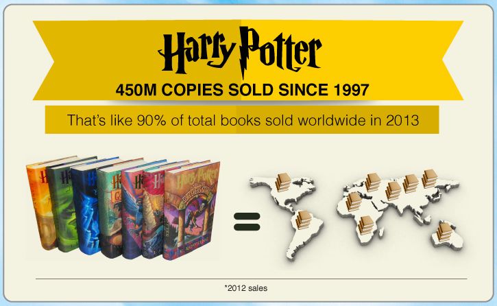С 1997 года с книжных полок сметено 450 миллионов копий. Это 90% от всех книг в мире, проданных за 2013 год.