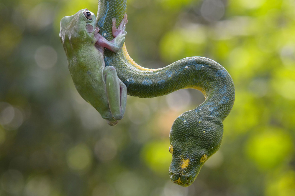 Лягушка и змея 11/08/2014 18:03 Эти удивительные кадры снял Fahmi Bhs в зоопарке Джакарты, Индонезия. Главная / Картинки +14 Admin 1 1 367