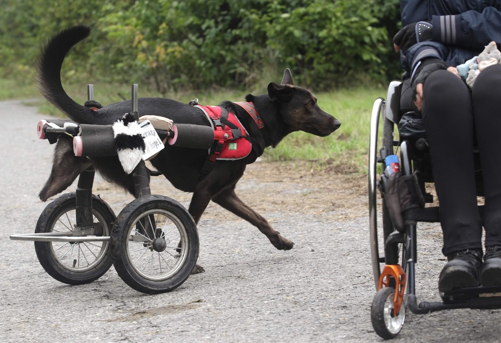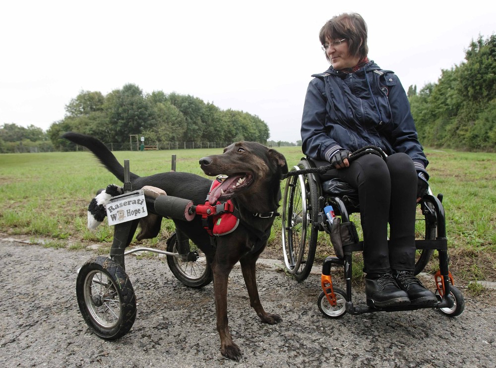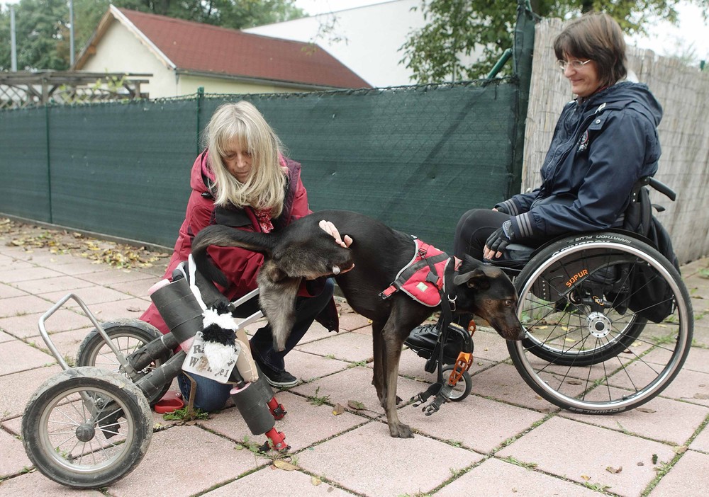 Susanna Nitz-Wessely вот у же три года помогает своей подруге Regine Grosinger's собрать песика на прогулку в Вене. Собаку нашли с отрубленными ногами, когда ей было четыре месяца. Regine Grosinger хоть и сама инвалид, взяла пса к себе, приобрела ей коляску и сейчас они всегда гуляют вместе.