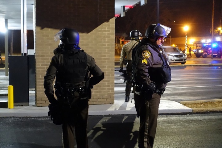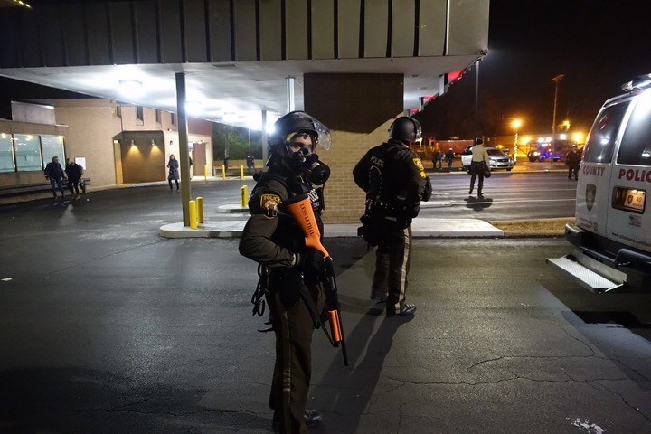 Фергюсон это небольшой город находящийся в пригороде Сент-Луиса и населенный приемущественно черными. Довольно приличный городок, без экстрима, как, к примеру, в черном гетто Филадельфии. Вся движуха происходит только в одном его районе, который все время показывают по телевизору. Из-за этого складывается ощущение, что там все в огне и демонстрантах, но это не соответствует действительности. Все происходит на пятачке рядом с полицейским участком в котором служил коп застреливший Майкла Брауна. Переодически что-то случается на соседних от участка улицах. Дальше город живет своей обычной жизнью и если бы не огромное количество полиции, то происходящие события были бы практически незаметны. Даже на той улице, где сейчас стоят протестующие, работает куча заведений. Периодически в разных местах города появляются мирные протестующе, которые ходят большими группами и что-то кричат. Они же стоят напротив полицейских, держат плакаты и не ввязываются ни в какие столкновения. Остальная толпа состоит из обычных гопников со спущенными штанами, которые ведут себя вызывающе и ждут повода, чтобы с кем-нибудь зацепиться. А чё ты тут делаешь? А ты откуда? А зачем приехал? По виду очень многие из них обкурены или на наркоте. По городу катаются полицейские машины и броневики, которые находят кучкующихся гопников, просят тех разойтись, а в случае отказа применяют силу и слезоточивый газ. Особо буйных и активных арестовывают. Полиция держит оборону вокруг муниципальных зданий и периодически, когда начинается какое-то движение в их сторону, постреливает газом. Среди них много сотрудников вооруженных нелетальным оружием с резиновыми пулями. Рядом с ними стоят бойцы Национальной гвардии, которых в большом количестве нагнали в город. Вооруженные полицейские есть во всех заведениях, в барах, в магазинах и даже отелях. Таким образом власти пытаются не допустить повторения вчерашних событий, когда район отдали на разграбление толпе и особенно не вмешивались в процесс, чтобы не случилось эскалации насилия и не дошло до человеческих жертв. Еще в городе тысячи журналистов со всего света, которые слетелись туда, как мухи на сами знает что. Всем хочется показать картинку американского апокалипсиса, которого на самом деле нет. Все что вы видите на экране происходит в одном единственном районе небольшого города.