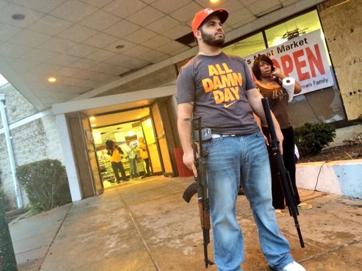Еще мне понравилась вот эта вчерашняя фотография с владелецем супермаркета, который вышел на улицу с автоматическим оружием в руках после того, как начали грабить его магазин. Помогло или нет не знаю.