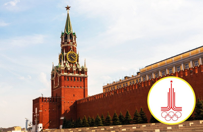 Символичный логотип, созданный специально для Олимпиады—80. Параллельные линии (символизирующие беговые дорожки) вытянуты в архитектурный силуэт с пятиконечной звездой. В минималистичном дизайне легко угадывается Спасская башня — часть наиболее узнаваемого международного символа Москвы — Кремля.