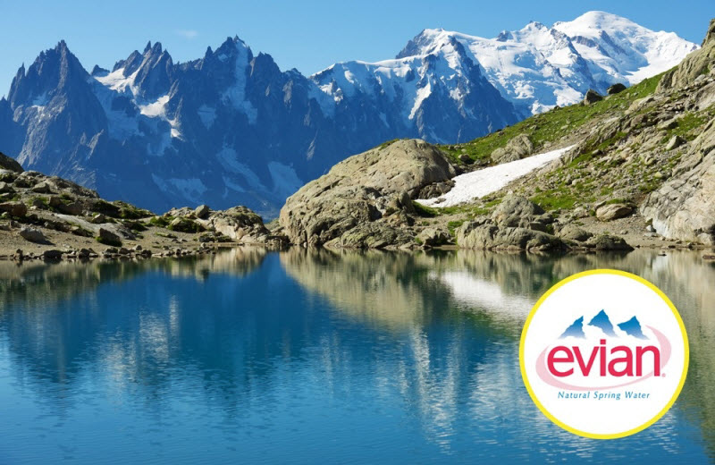 Французская минералка Evian названа в честь городка Эвиан-ле-Бен, в окрестностях которого находятся несколько источников. Именно здесь, на берегу Женевского озера с живописнейшими видами на Альпы, и разливается по бутылкам известная на весь мир вода. Немудрено, что на узнаваемый логотип попали именно горы.